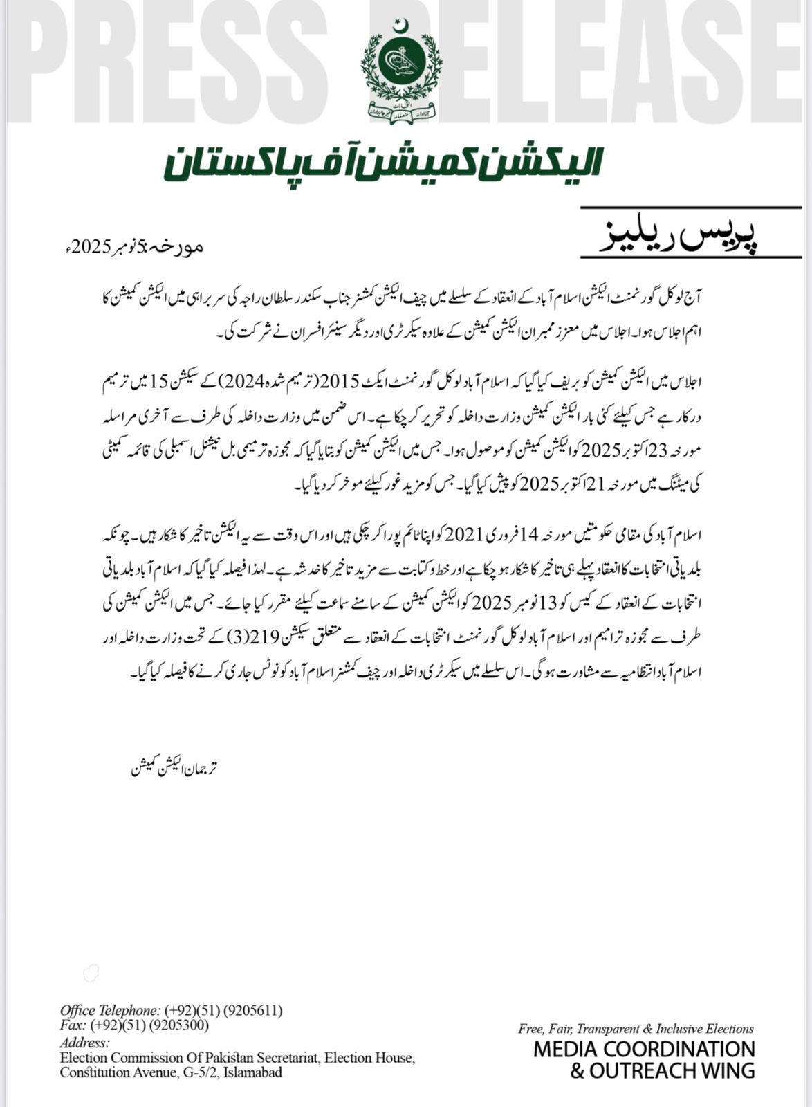 Hon’ble Chief Election Commissioner of Pakistan