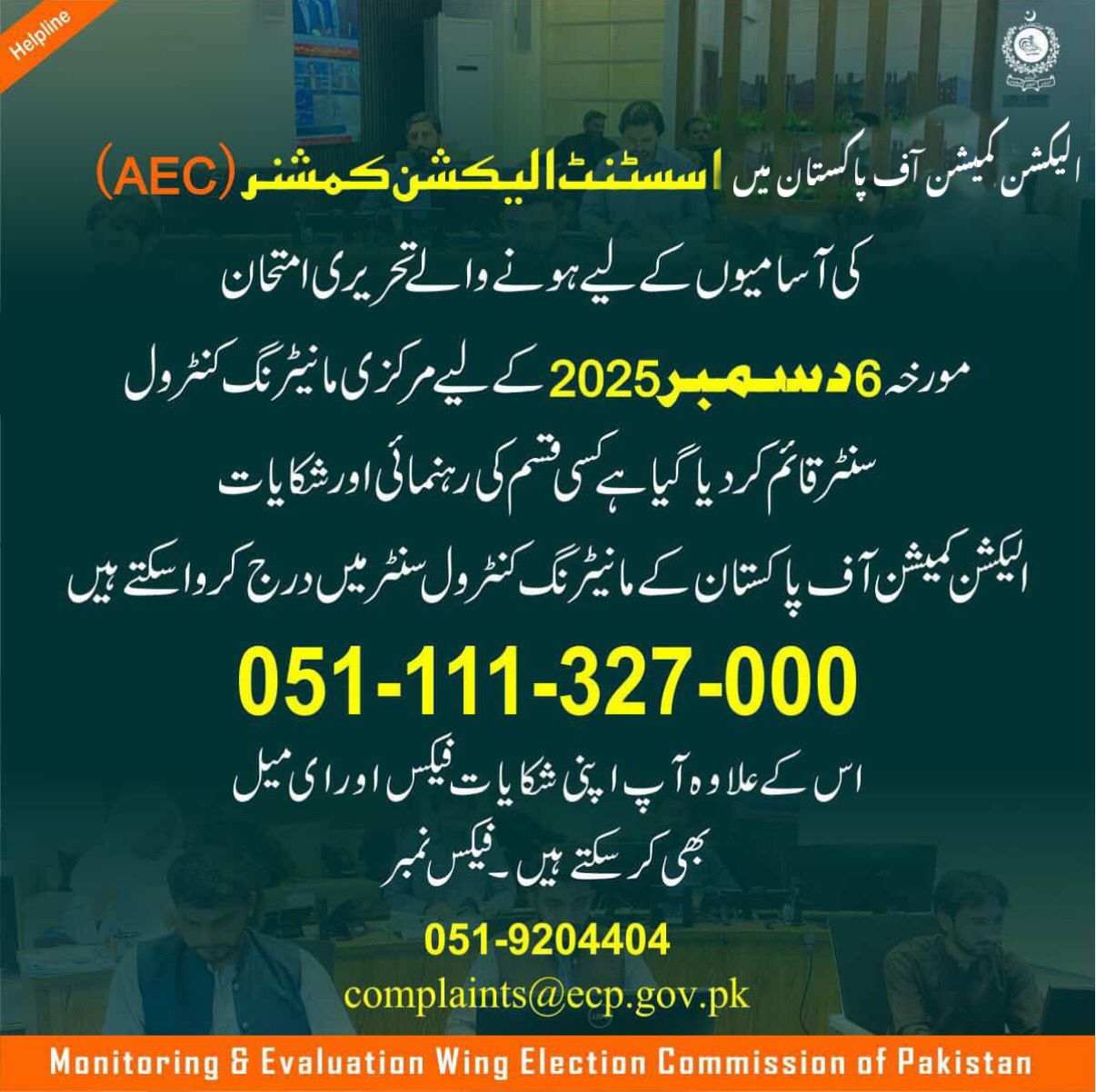 Monitoring Control Centre Established in ECP for Assistant Election Commissioner (BS-17) Exam