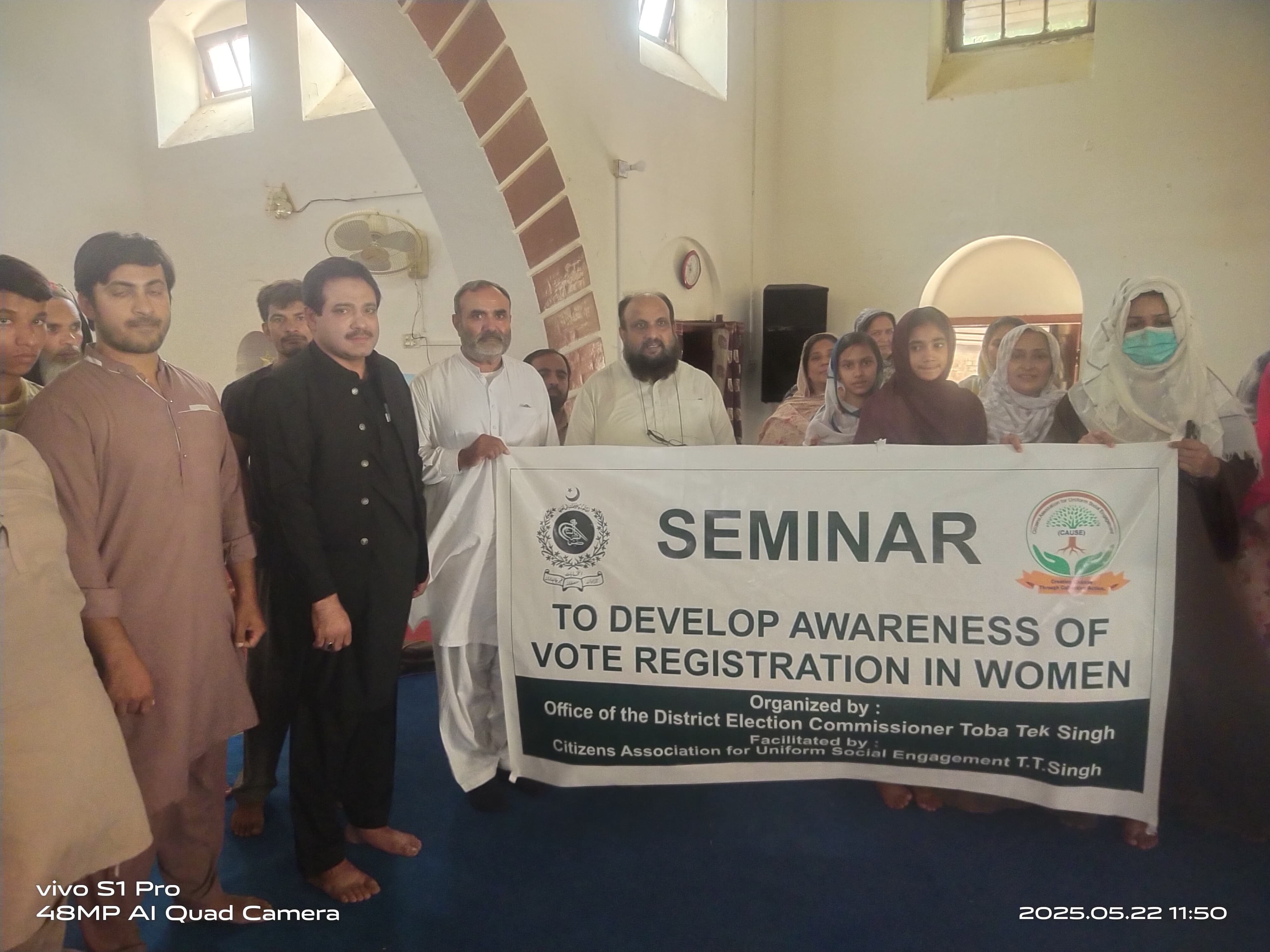 DEC Toba Tek Singh organized a women’s voter registration awareness seminar on 22-05-2025 at a church in Toba Tek Singh, as part of its 6-month outreach plan led by the Media Coordination and Outreach Wing. The session aimed to encourage greater female participation in the electoral process.