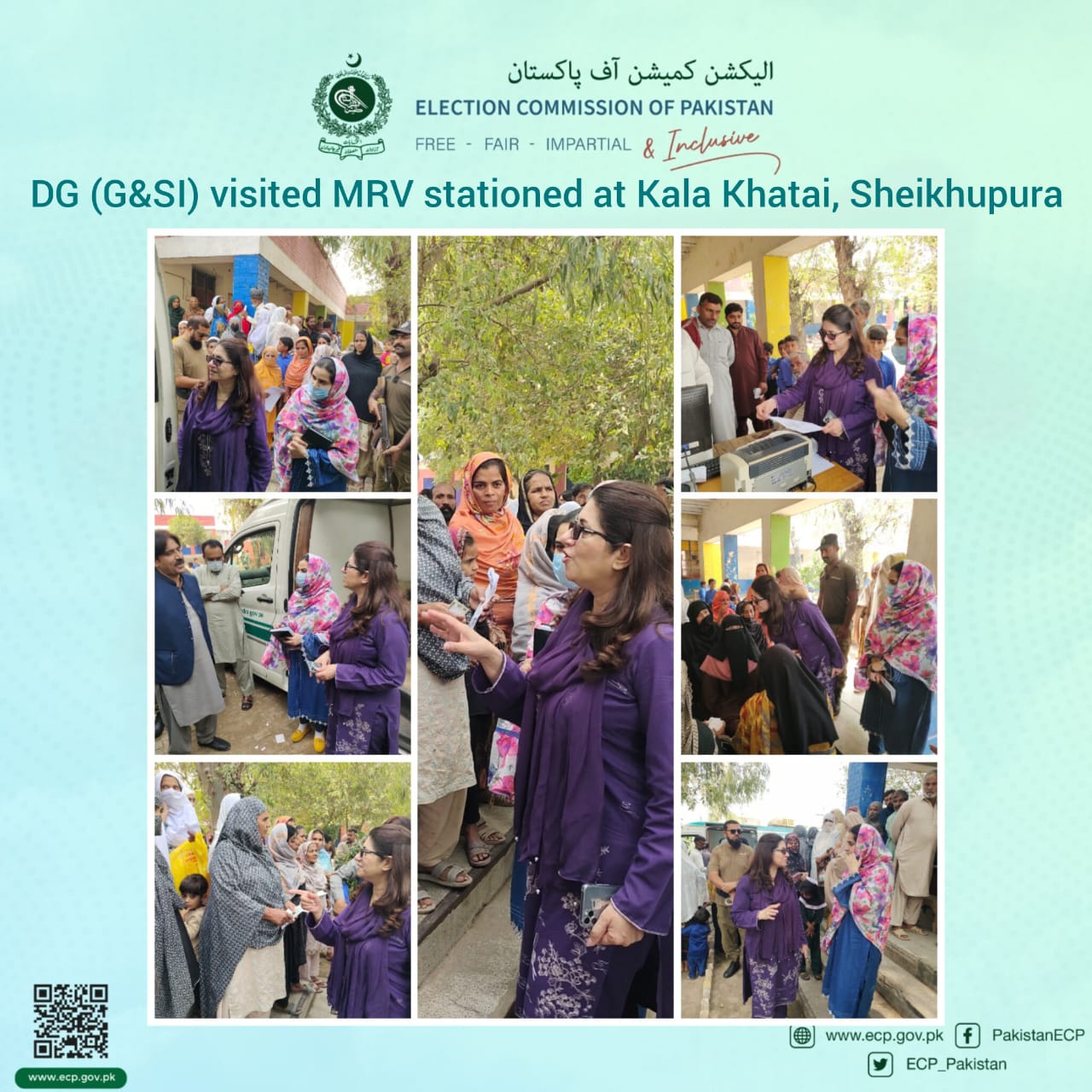 Ms. Nighat Siddique, Director General (GSI), visited the Mobile Registration Van (MRV) stationed at Kala Khatai, District Sheikhupura.  During the visit, she interacted with the public, observed the female NIC registration process, and appreciated the facilitation provided by the Secretary Union Council and the dedicated efforts of the DEC Office Sheikhupura team.  This initiative aims to enhance access to NIC registration services, especially for women, ensuring greater inclusion in the electoral process.  #ECP #VoterRegistration #InclusiveDemocracy #NICRegistration #Sheikhupura #WomenEmpowerment #MRV